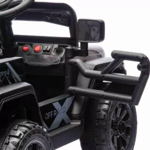 Vozilo OFFROAD je primerno za otroka. Zahvaljujoč ogromnim kolesom z obešenimi osmi in širokim sedežem zagotavlja udobno vožnjo tudi po težkih terenih.