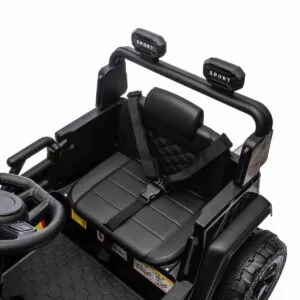 Avto je opremljen tudi s stropnimi lučmi in LED lučmi. Inovativna zvočna enota s sodobno glasbo z vhodom USB / SD. Zaradi varnosti otrok je na sedežu nastavljiv varnostni pas.