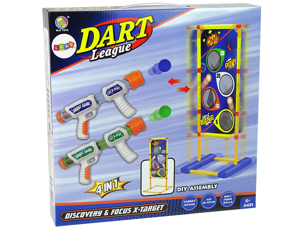 4 v 1 športna igra s tarčo, vrečkami in penastima pištolama je zabaven in aktiven igralni komplet, namenjen otrokom od 4. leta starosti dalje, pa tudi celotni družini. Igra je idealna za igro na prostem ali v notranjih prostorih – na vrtu, v gozdu, na terasi ali doma.