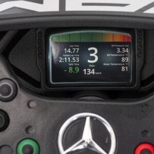 Predstavljamo vam čudovit športni avtomobil z licenco Mercedes, ki bo zagotovo razveselil vsakega malega ljubitelja štirih koles. Zahvaljujoč priloženemu 2,4 GHz daljinskemu upravljalniku lahko skrbnik v celoti upravlja vozilo ali pa otrok vozi sam, ko se nauči pravil vožnje.