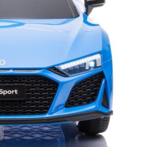 Audi R8 Spyder ima realističen videz, izvirnih značilnosti, izdelane podrobnosti in logotip na pokrovu motorja, volana, kakovosti materialov in izdelave ter širok eko usnje sedež. Avto je opremljen tudi z LED lučmi . 2 gumba za sodobno glasbo in pesmi, priključek za MP3, SD kartico , USB . Digitalni indikator zmogljivosti baterije, za varnost otrok je na sedežu nastavljiv varnostni pas.