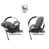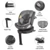 Avtomobilski sedež je nameščen z uporabo isofixa in podporne noge, kar je priročen in praktičen način namestitve, glede na večino avtomobilov na trgu. Sistem vrtenja za 360 stopinj se lahko uporablja z eno roko, kar olajša namestitev in odstranitev otroka iz avtomobilskega sedeža. Avtomobilski sedež ima 11 položajev za nastavitev naslona za glavo in 4 položaje za nastavitev hrbta.