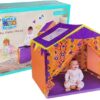 Kdo od nas v otroštvu ni gradil baz, skrivališč? To je bil edini kraj, kjer smo se lahko skrili pred vsem svetom. Naš šotor lahko povzroči, da noče oditi. Bogate barve omogočajo malčku, da vadi prepoznavanje barv in bo prineslo veliko zabave, z njim se lahko neskončno igra. Poleg tega bo razvilo njegovo radovednost o svetu okoli sebe. Z njegovo uporabo med igro boste razvijali vid in aktivnost ter dodatno vplivali na ustvarjalnost in logično razmišljanje.