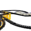 Celotna proga je dolga 626 cm!! Dodatne mostne strukture bodo popestrile zabavo in dodale učinkovitost videzu čakalne vrste. Sam vlak je bel z zlatimi in modrimi črtami ob straneh. Steze so črne, most pa rumen, kar odlično ustvarja kontrast. Velika prednost je vrtoglava hitrost, vlak drvi po tirih in vaš otrok lahko uživa v zabavi.