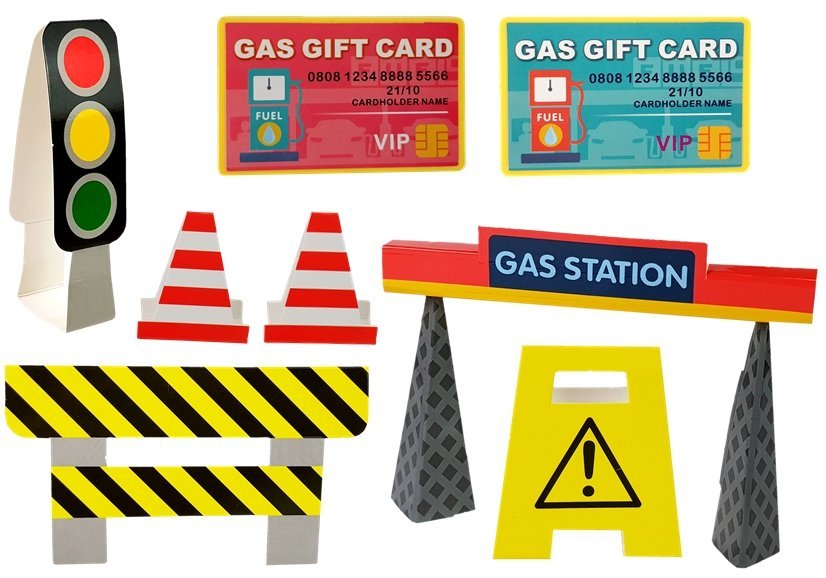 Ta čudovita modro-rumena bencinska črpalka vam omogoča igro točenja goriva, ki bo za najmlajše zagotovo prava zabava! Igrača ima svetlobne in zvočne signale. Ko je vklopljen, so navodila izgovorjena v angleščini, vaš otrok bo razvil jezikovne sposobnosti. Postaja ima režo za kreditno kartico, po pritisku na gumb na ročaju pa se polnijo litri. Vsak gumb vsebuje presenečenja, naj bo vašemu otroku zabavno, različne funkcije ga bodo zaposlile več ur. Enajst različnih pesmi za otroke, učenje 15 različnih imen živali so nekatere od prednosti. Bencinska črpalka ima tudi držalo za cev, ki se popolnoma prilega majhnim otroškim rokam. Še več, v kompletu sta dva avtomobila s prijaznimi obrazi. Eden od njih je mešalec betona, drugi pa ima na strehi lestev. Dve kreditni kartici, vsi znaki, semaforji in stebrički so tudi eden od dodatkov. Zahvaljujoč temu bo vaš otrok lahko ustvaril različne scenarije.