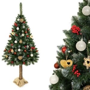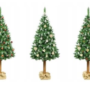 Celotna struktura je sestavljena iz 3 delov: božičnega drevesa, naravnega borovega debla in stabilne osnove, zavite v dekorativno juto. Podlaga ni napolnjena z betonom, ne ponareja prave teže božičnega drevesa. Zahvaljujoč modularnem sistemu je tako montaža kot razstavljanje drevesa zelo enostavna, povezave vseh segmentov pa niso vidne. Sodobno božično drevo ne le, da izgleda lepo, ampak je tudi praktično. Pri pospravljanju ne zavzame veliko prostora, lahko ga enostavno premaknemo v različne kotičke našega stanovanja. Vejice so trde in močne, ne bodo se upognile pod težo božičnih okraskov. Barva božičnega drevesa je izbrana tako, da je podobna pravem drevesu. Zaradi naravnega videza je čarovnija božiča še bolj občutna.