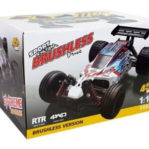 Priložen je udoben in natančen krmilnik. Če ste kdaj upravljali profesionalni avtomobil, veste, da vam ta vrsta daljinskega upravljalnika omogoča največje užitke v vožnji. Brezžični daljinski upravljalnik, ki je vključen v kompletu, deluje pri 2,4 GHz, tako da lahko tekmujete v večji skupini, ne da bi vas skrbeli motnje. Daljinski upravljalnik omogoča nadzor plina in hitrosti. Številčnice vam omogočajo enostavno upravljanje vožnje. Največja prednost je hitrost, ki jo doseže, kar 45 km/h! Štiri kolesa imajo neodvisno vzmetenje udarcev in blažene amortizerje, kar omogoča boljši oprijem na cestišču. Neverjetno hitra vožnja bo dodala kanček adrenalina in poskrbela za veliko zabave za številne uporabnike.