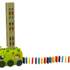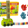 Tukaj je zeleni avto dinozaver na baterije, ki se ne samo premika, ampak vam tudi pomaga zgraditi fantastične domino poti!