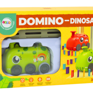 Ali vaš otrok rad gradi in odkriva nove načine igranja? Ta prikupen zeleni dinozaver je popoln spremljevalec za vsakega malega gradbenika. Igrača se premika v različne smeri in s svojim gibanjem očara otroke. Set vsebuje domino kocke v štirih barvah: rumena, rdeča, modra in vijolična.