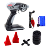 Zahvaljujoč zmogljivemu motorju in 7,4V bateriji avtomobil doseže hitrosti do 30 km/h. Daljinski upravljalnik s frekvenco 2,4 GHz omogoča natančno upravljanje na razdalji do 25 metrov. Avto ima LED osvetlitev – spredaj, zadaj in neonske luči pod podvozjem – ki poudarja njegov sodoben videz in omogoča vožnjo tudi po temi. Komplet vključuje tudi dodaten komplet pnevmatik, ključ za njihovo menjavo in stožce za učenje driftanja.