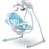 Raffi je visokokakovostna električna gugalnica, zasnovana za dojenčke. Udoben sedež z blazino vam omogoča, da ga uporabljate že v prvih dneh otrokovega življenja. Dvostopenjska nastavitev naslonjala vam omogoča, da otroka postavite v ležeči ali pol ležeči položaj. Z obračanjem sedeža za 90 stopinj (levo ali desno) lahko spremenite način zibanja (desno-levo na spredaj-nazaj). Gugalnica ima električni vrtiljak z lučmi in snemljiv pladenj za enostavno varstvo otrok. Raffi ima tudi snemljivo mrežo proti komarjem s kapuco, napaja pa jo lahko z baterijami, kar olajša uporabo na prostem.