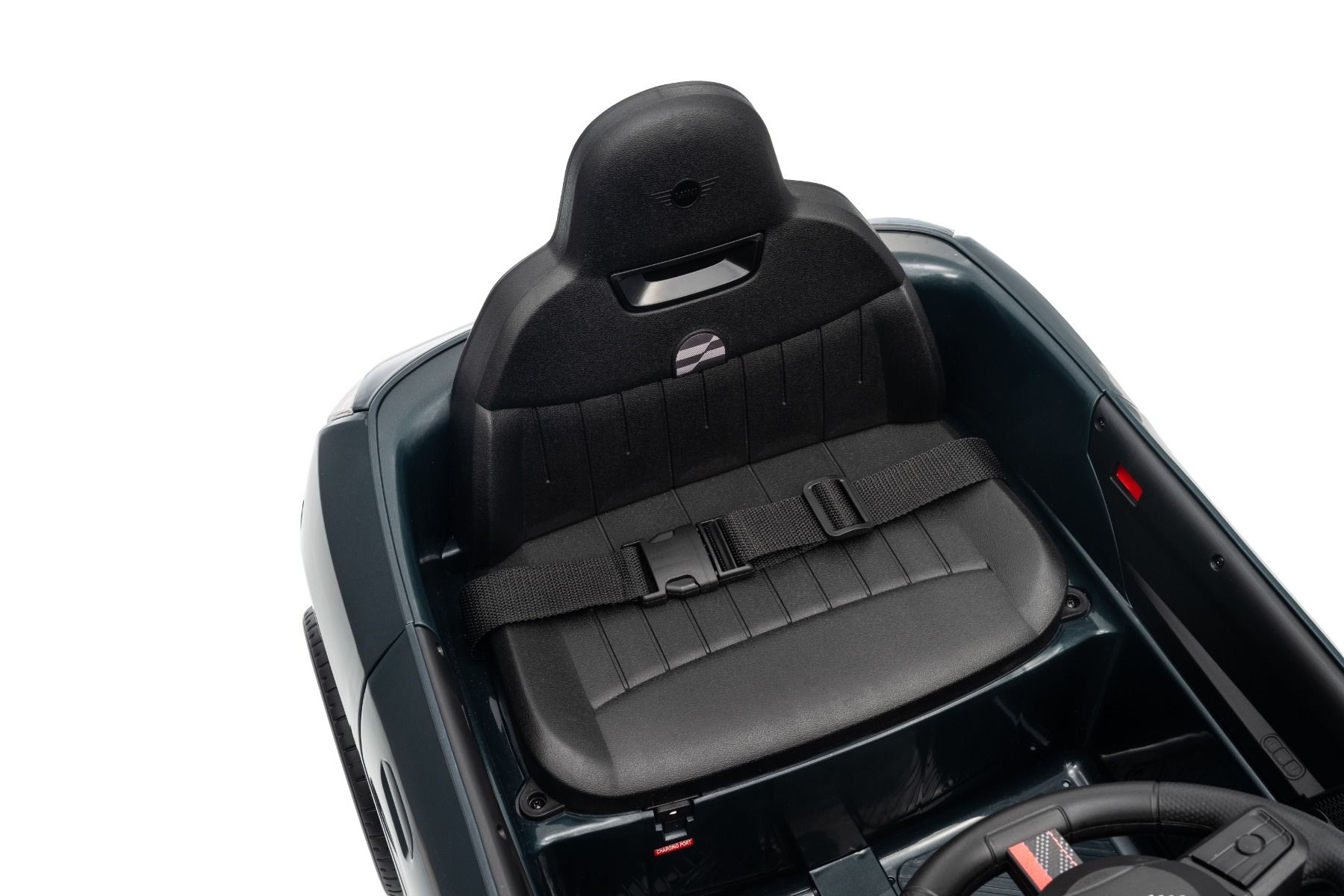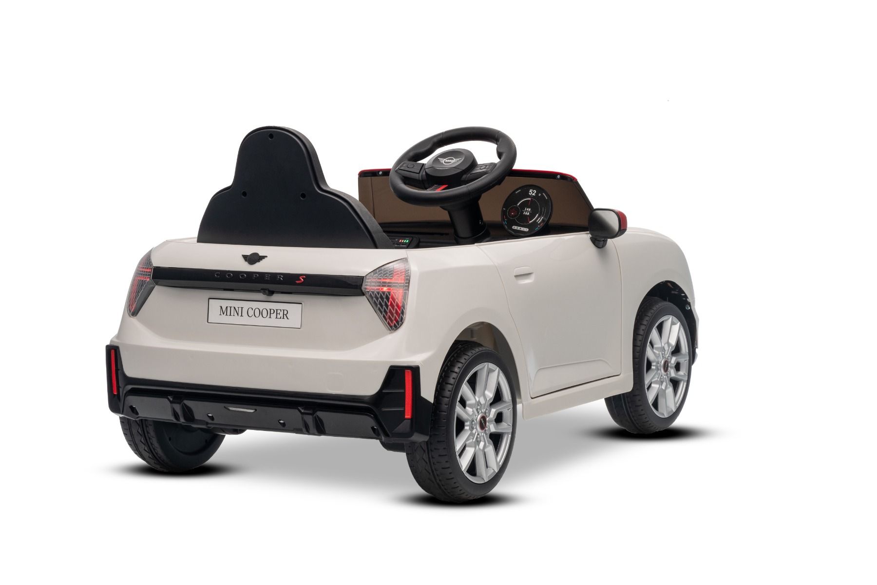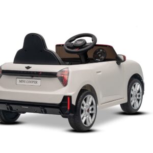 Eleganten električni avtomobilček za vožnjo z ikoničnim dizajnom MINI. Dvojna odpirajoča se vrata omogočajo enostaven vstop. Ko je stikalo za vklop vklopljeno, model simulira zvoke zagona motorja, prižgejo pa se sprednje in zadnje LED luči . Na voljo so tudi zvočni učinki, kot so hupa, zvok vožnje, pesmi in melodije. Na voljo sta vrata USB in povezava Bluetooth . Glasnost se nadzoruje neposredno prek vgrajenega predvajalnika MP3.