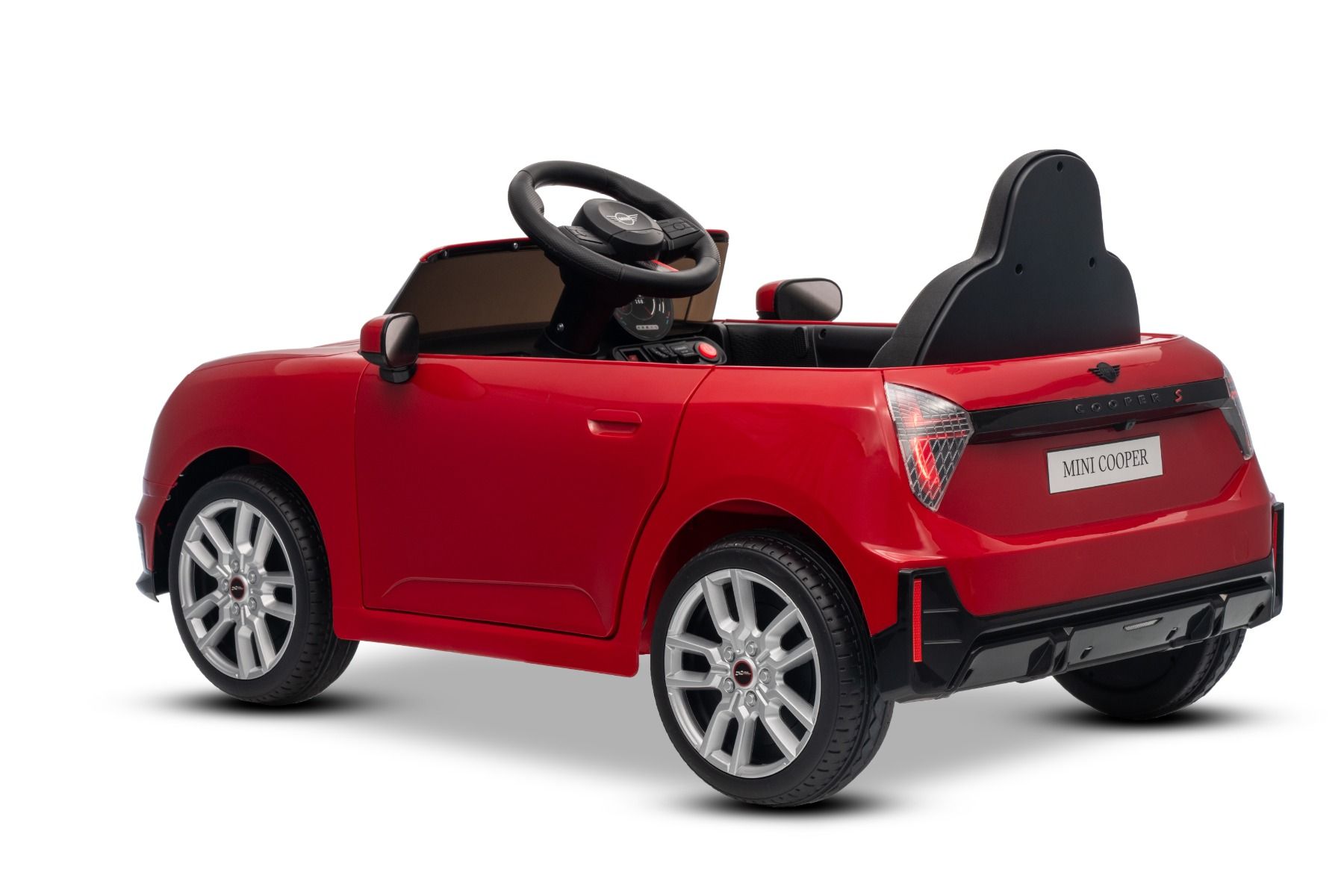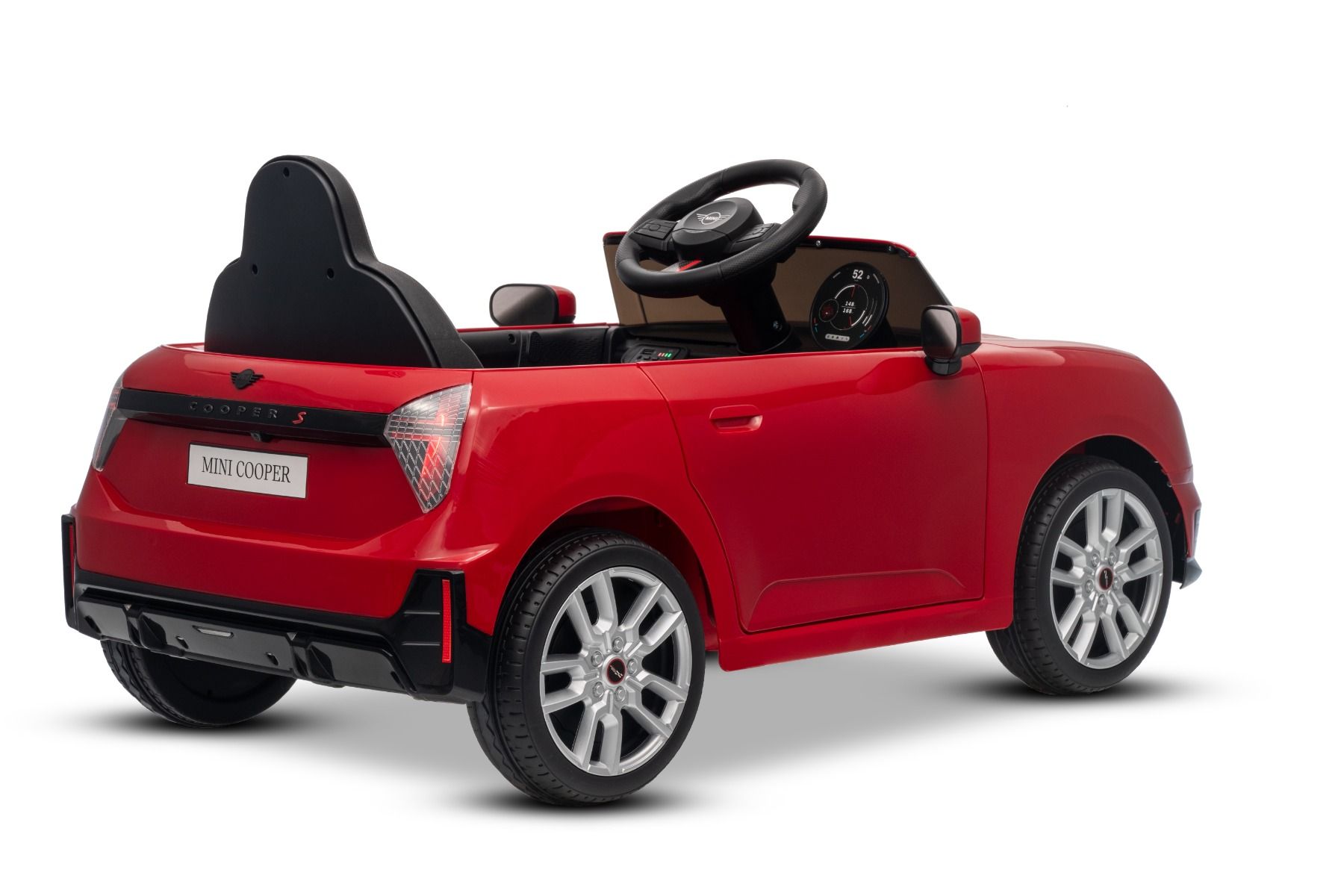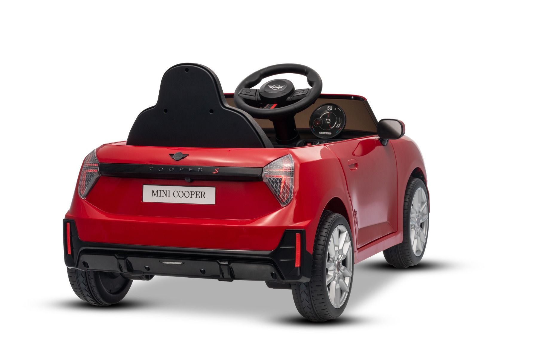Eleganten električni avtomobilček za vožnjo z ikoničnim dizajnom MINI. Dvojna odpirajoča se vrata omogočajo enostaven vstop. Ko je stikalo za vklop vklopljeno, model simulira zvoke zagona motorja, prižgejo pa se sprednje in zadnje LED luči . Na voljo so tudi zvočni učinki, kot so hupa, zvok vožnje, pesmi in melodije. Na voljo sta vrata USB in povezava Bluetooth . Glasnost se nadzoruje neposredno prek vgrajenega predvajalnika MP3.