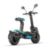 Velocifero Mad E-Scooter združuje moč in udobje z robustno zasnovo, primerno za uporabo na cesti. Z zmogljivim motorjem v pestu s 1000 W in baterijo 48 V 12 Ah doseže hitrost do 40 km/h in ponuja doseg približno 35 km z enim polnjenjem. S homologacijo EGS in hidravličnimi kolutnimi zavorami spredaj in zadaj zagotavlja varno in zanesljivo vožnjo. Skuter vključuje osvetljeno LED armaturno ploščo, LED žaromete, zavorne luči in zadnje luči ter ohišje, zaščiteno pred škropljenjem, z oceno IPX4. Zložljivo krmilo in snemljiv sedež zagotavljata dodatno prilagodljivost in udobje.
