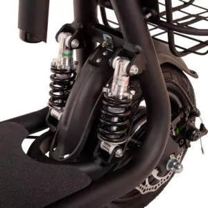 Kombinacija hitrosti in spretnosti, 12-palčna napihljiva kolesa ter prefinjeno sprednje in zadnje vzmetenje bodo kos neravninam na cesti. Dve kolutni zavori vas bosta varovali, blatniki pa omogočajo udobno vožnjo v dežju.