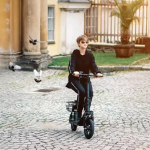 Če morate skuter prevažati, preprosto zložite krmilo, nastavite sedež v najnižji položaj in skuter postavite v prtljažnik vašega avtomobila. S tem skuterjem boste lažje prišli v šolo, službo ali se izognili prometnim zastojem . Poleg tega vam bo omogočil tudi vožnjo po kolesarskih stezah, asfaltiranih cestah ali gozdnih cestah.