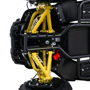 QUAD High Performance je električni ATV štirikolesnik, zasnovan za rekreacijo. Sprednja kolesa so opremljena z mehanskimi kolutnimi zavorami, ki jih upravljate z vzvodi na krmilu. Posebej boste cenili možnost zaklepanja ročice kadar je quad parkiran. Kolesa so povezana z elektromotorjem na zadnji osi. Zato se uporablja verižni pogon ali zobnik kardanske gredi, kar močno poveča življenjsko dobo in zanesljivost stroja. Na zadnji osi je tudi mehanska kolutna zavora. Quad omogoča hitrost do 35 km/h, ki pa jo lahko varno omejimo s ključem.