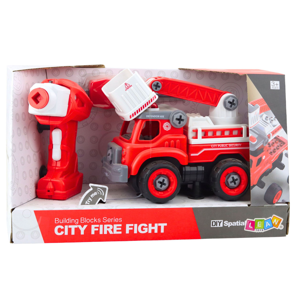 Celoten komplet je izdelan iz trpežnih, varnih materialov, kar zagotavlja dolgotrajno in varno uporabo. Prepoznavna rdeče-bela barvna shema popolnoma posnema videz pravih gasilskih vozil, kar še dodatno spodbuja otrokovo domišljijo in ga popelje v svet resničnih reševalnih operacij. Kolesa in gibljivi deli imajo plastične vijake, ki jih lahko malčki odvijajo in privijajo s priloženim izvijačem ali vijačnikom.