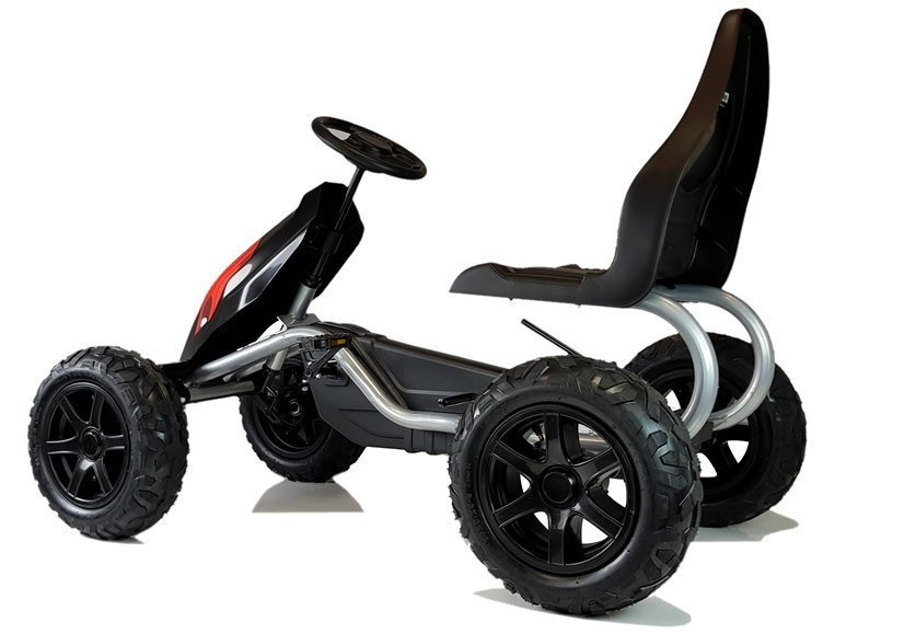 Vozilo ima široka napihljiva kolesa. Postavitev gokarta na mehka kolesa omogoča vozniku, da svoj dvokolesnik vozi po različnih površinah. Udobje vožnje zagotavljata črn, širok sedež z naslonjalom in ergonomsko oblikovan volan.
