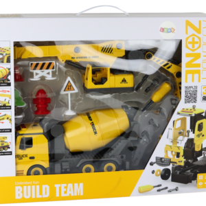 Komplet vam omogoča sestavo do treh različnih gradbenih strojev : mešalnika betona, bagra in žerjava s premičnim kavljem. Otrok lahko vozilo preoblikuje glede na svojo domišljijo in potrebe na »gradbišču«.
