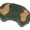 Dinozaver ima možnost daljinskega upravljanja . Priložen daljinski upravljalnik ima dva aktivna gumba. Z gumbom na levi aktivirajte zvoke in premikanje glave. Drugi gumb premakne dinozavra naprej. Daljinski upravljalnik napajajo 3xAA baterije – niso priložene.