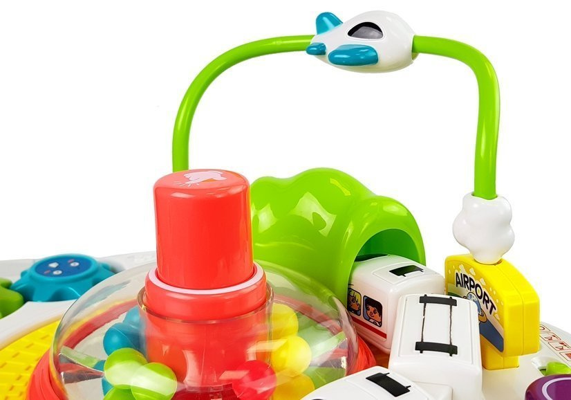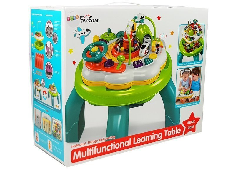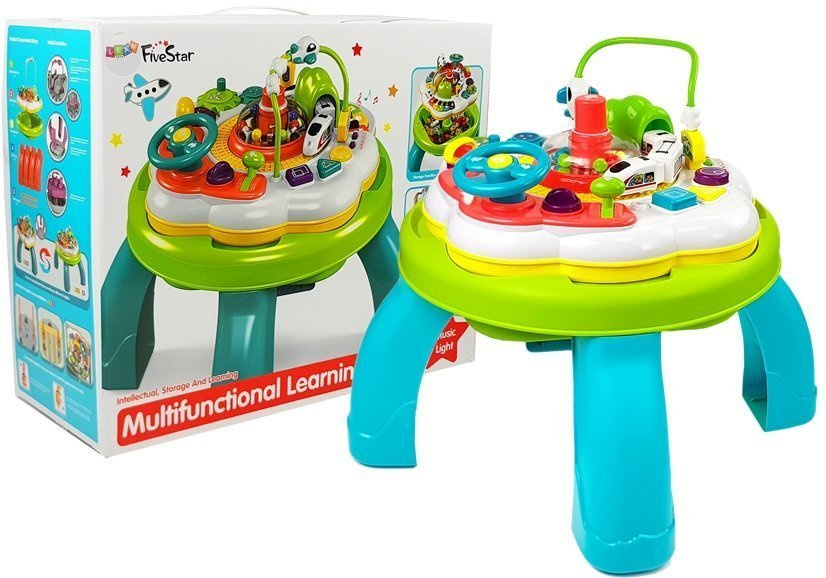 Igranje s to fantastično, večnamensko mizo za vašega malčka ima samo prednosti. Vpliva na razvoj otrokovih prstkov in rok ter jih spodbuja k samostojnemu stojenju in poskušanju delati majhne korake. Številni zvočni efekti spodbujajo otrokov sluh, različne barve in oblike pa otrokov vid.