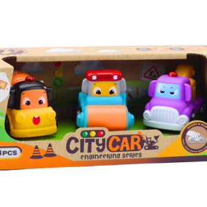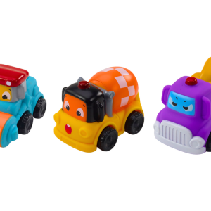 Ta komplet treh gradbenih vozil je odlična igrača za otroke, ki zagotavlja ure varne in ustvarjalne igre. Vozila so izdelana iz mehke gume in trpežne plastike, zato so brez ostrih robov in majhnih delov, zaradi česar so varna tudi za najmlajše otroke. Komplet vsebuje tri očarljiva vozila: mešalnik cementa, vlečno vozilo in cestni valjar, vsako s prijaznim, nasmejanim obrazom, ki takoj vzbudi naklonjenost in spodbuja igro.