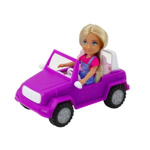 V kompletu se nahaja prisrčna punčka, visoka približno 13 cm, čudovit konj s sedlom in vajetmi ter sodobno terensko vozilo s prikolico. Vse je izdelano iz kakovostne, trpežne plastike, odporne na otroško igro. Realistični dodatki poskrbijo, da se otrok popolnoma vživi v svojo vlogo skrbnika živali in pustolovskega voznika.