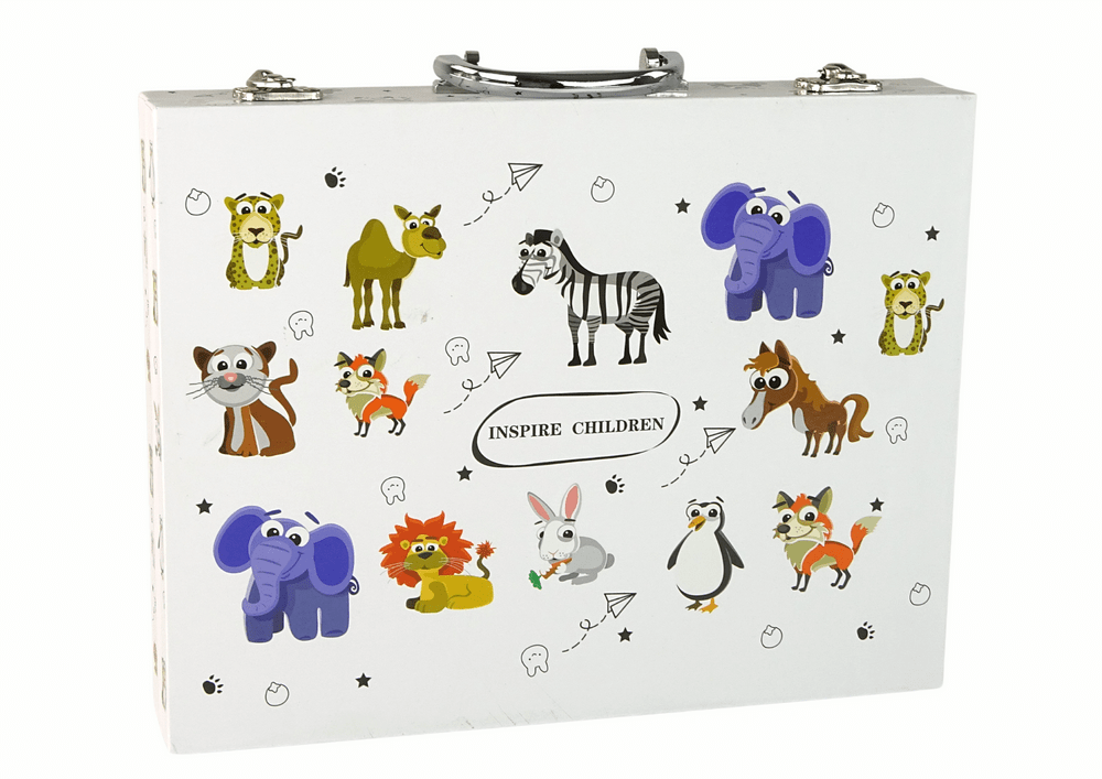 Ta umetniški set v belem, trdnem kovčku s prijaznimi živalmi je popolno darilo za male umetnike, ki želijo odkriti svet umetnosti in zabave. Ta komplet za male umetnike vsebuje 68 elementov, kot so barvice, flomastri, barve in čopiči. Ta umetniški set razvija otroško ustvarjalnost in domišljijo, podpira razvoj slikarskih in risarskih spretnosti ter jih spodbuja k eksperimentiranju z barvami in tehnikami. Dajte svojemu otroku priložnost, da se izrazi skozi umetnost še danes!