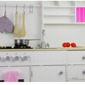 S temi dodatki lahko otrok pripravi “obroke”, organizira kuhinjo in se uči osnov gospodinjskih opravil.