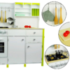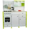 Lesena otroška kuhinja Paula v zeleno-beli kombinaciji je popolna izbira za male kuharje, ki imajo radi ustvarjalno in domišljijsko igro. Ta kakovostna kuhinja za otroke iz lesa združuje funkcionalnost, realistične detajle in izjemno estetiko, zaradi česar je odlična popestritev vsake otroške sobe.