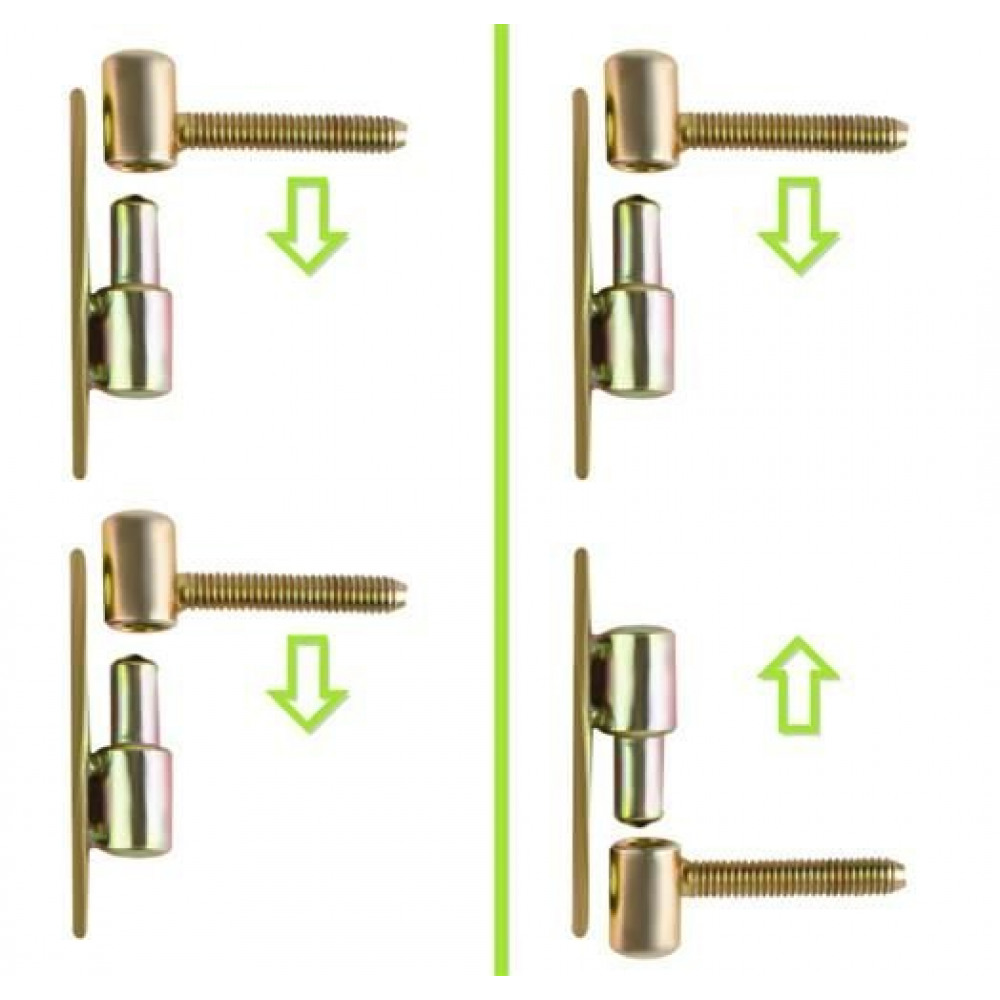 Izdelek deluje kot vratno krilo, na eni strani so tečaji, na drugi strani vijak za zapiranje in blokiranje vrat pred odpiranjem – lahko jih pritrdite na dve strani.