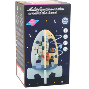 Raketa ima stene z barvitimi, premičnimi elementi, ki bodo spodbujali otrokov razvoj. Igrača ima labirinte iz kroglic, vrtljive zobnike in majhne perlice, ki jih lahko uporabite kot abakus.