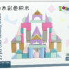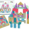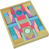 Set je sestavljen iz lesene podlage s kockami različnih velikosti in oblik. Iz njih zlahka ustvarja zgradbe, gradove in trdnjave. Tukaj boste našli naravne kocke ter vijolične, roza, mint, rdeče in zelene kocke. Celoten komplet vsebuje 28 kosov kock.