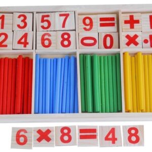 Večbarvni komplet, sestavljen iz štiribarvnih palic in kock s simboli matematičnih operacij, bo vašemu otroku omogočil, da se na zanimiv način nauči seštevanja, odštevanja, množenja in deljenja. Razvijalno igro lahko izvajate na več načinov, na primer tako, da palčke razporedite v skupine in nato mednje vstavite izbrane simbole – po vsaki zamenjavi boste dobili povsem drugačen rezultat.