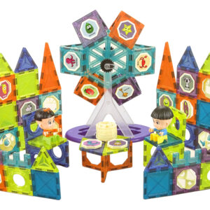 Komplet vsebuje 155 elementov. Nalepke prikazujejo živali, zelenjavo ali sadje, kar naredi celotno igro bolj privlačno. Z razglednim kolesom lahko zgradite grad ali ustvarite majhen zabaviščni park.