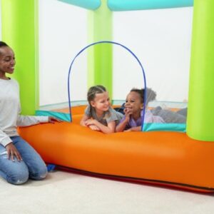 Poskočni grad je odlična atrakcija za vse otroke, starejše od 3 let, zasnovan je tako, da jih spodbuja k skupni igri. Zahvaljujoč debeli napihljivi podlagi in napihljivim mrežastim stranicam lahko vaši otroci varno skačejo in se igrajo. Robustna konstrukcija omogoča, da prenese poskakovanje, skakanje, prevračanje in prevračanje. Prozorne stene vam bodo omogočile nadzor nad dogajanjem v notranjosti in boste lahko ves čas pazili na svojega malčka. Majhna odprtina na sredini napihljivega plovila otrokom olajša vstop in izstop. Poleg odlične zabave bodo malčki lahko razvijali motorične sposobnosti, koordinacijo rok in oči ter spretnost. Otroci se med skakanjem in igro učijo prostorskega zavedanja, gradijo mišice in pridobivajo moč.