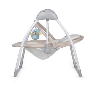 Izjemno zložljiv otroški gugalnik za novorojenčke lahko preprosto prenašate iz ene sobe v drugo ali zložite, da bo z vami na izletih k starim staršem. Velio, ki je enostaven za uporabo, ima integrirano nadzorno vrstico, kjer lahko izberete hitrost nihanja, melodijo in nastavite časovnik. Izdelek je opremljen s 5-točkovnim varnostnim pasom, prevleka pa je enostavna za odstranjevanje in pranje.