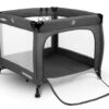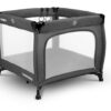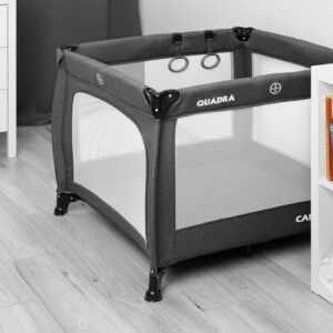 Lahka, praktična in enostavna za uporabo kvadratna otroška stajica. Quadra je kot nalašč za otroka, da počiva in se igra doma in med potovanjem. Opremljen je z mehko žimnico s pisano zasnovo in stoječimi ročaji za učenje. Vključena je ustrezna nosilna torba za enostaven transport.
