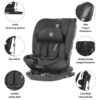Sedež omogoča uporabo v nasprotni smeri vožnje, kar je po i-Size priporočilih obvezno vsaj do 15. meseca starosti, ter kasneje tudi v smeri vožnje. Vgrajen sistem ISOFIX in zgornji privez (Top Tether) omogočata stabilno in pravilno namestitev v vozilo, sistem SPS (Side Protection System) pa zagotavlja dodatno zaščito pri bočnih trkih.