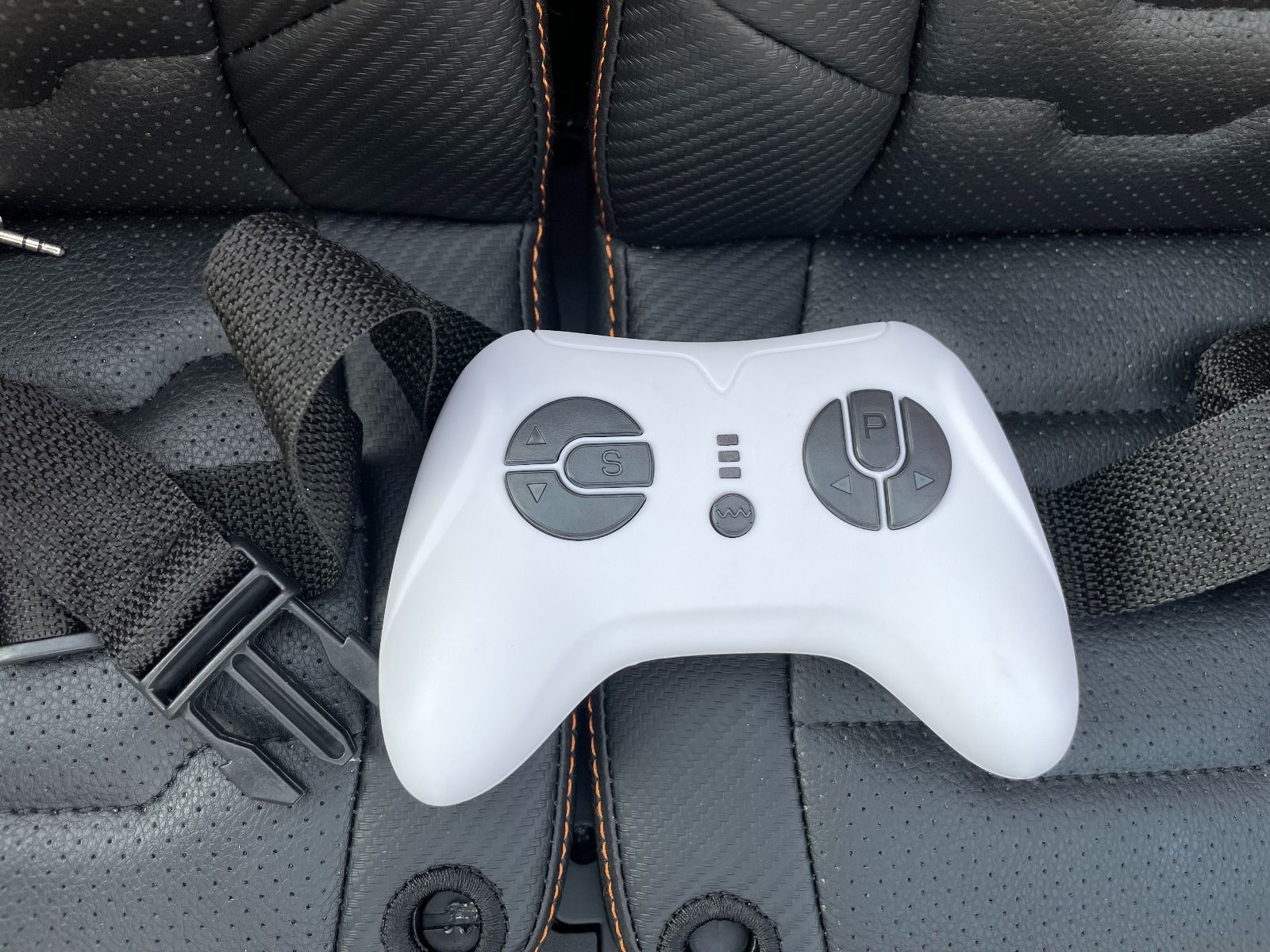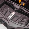 Avto je opremljen tudi z delujočimi sprednjimi in zadnjimi LED lučmi ter osvetljeno armaturno ploščo. Volan je opremljen z 2 gumboma za učinkovito hupo, moderno glasbo in pesmi, povezavo za MP3, USB in SD kartico ter seveda popolno kontrolo glasnosti, načina in učinkov. Za varnost otroka je na usnjenih sedežih nameščen nastavljiv varnostni pas.
