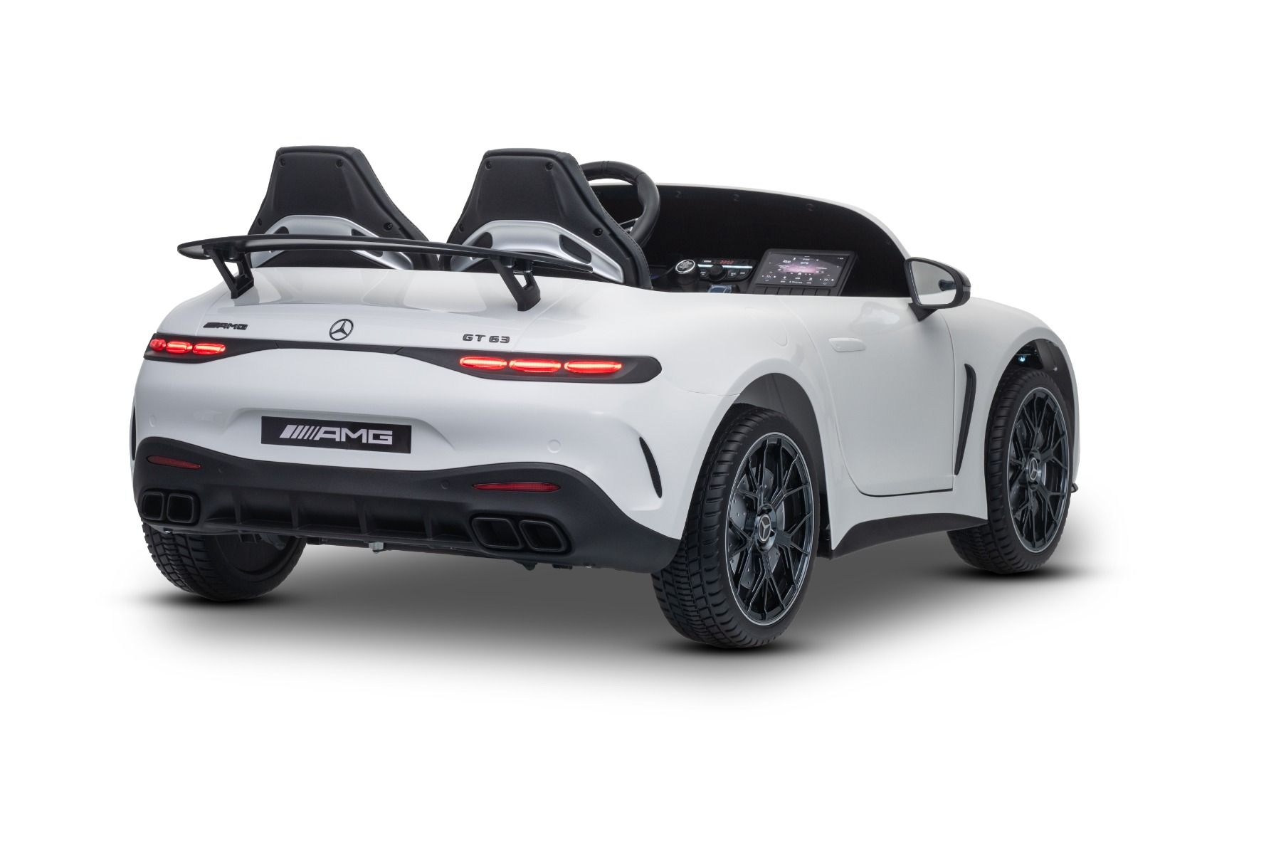 Domov | Otroška vozila | Baterijska otroška vozila | Otroški električni avto Mercedes-AMG GT63 24V litij baterija 4×4 – za dva otroka bela