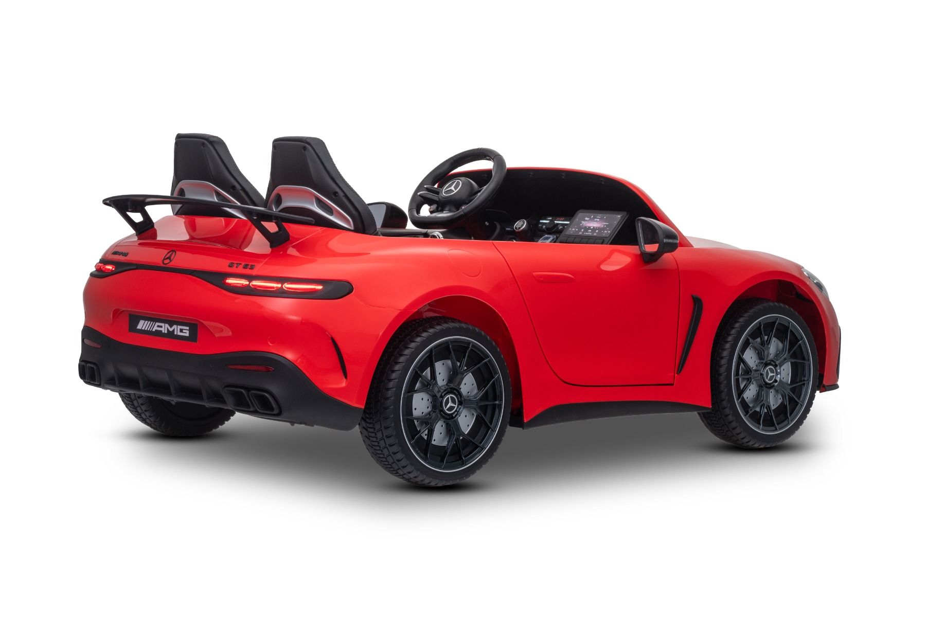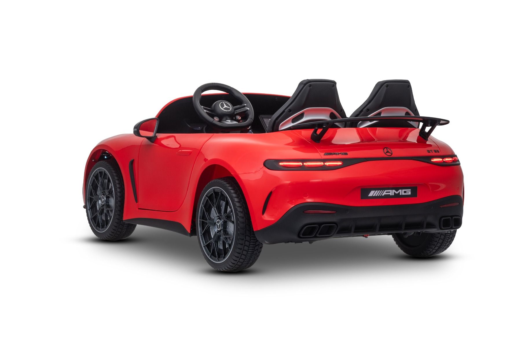 Licencirani otroški električni avtomobilček po vzoru športnega modela Mercedes-AMG GT 63 združuje realističen dizajn, zmogljiv pogon in bogato opremo. Zahvaljujoč uradni licenci Mercedes-AMG je model izjemno podoben pravemu avtomobilu – od značilne sprednje maske do športnih detajlov karoserije.