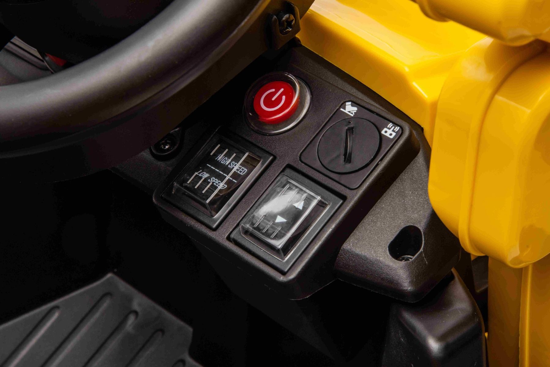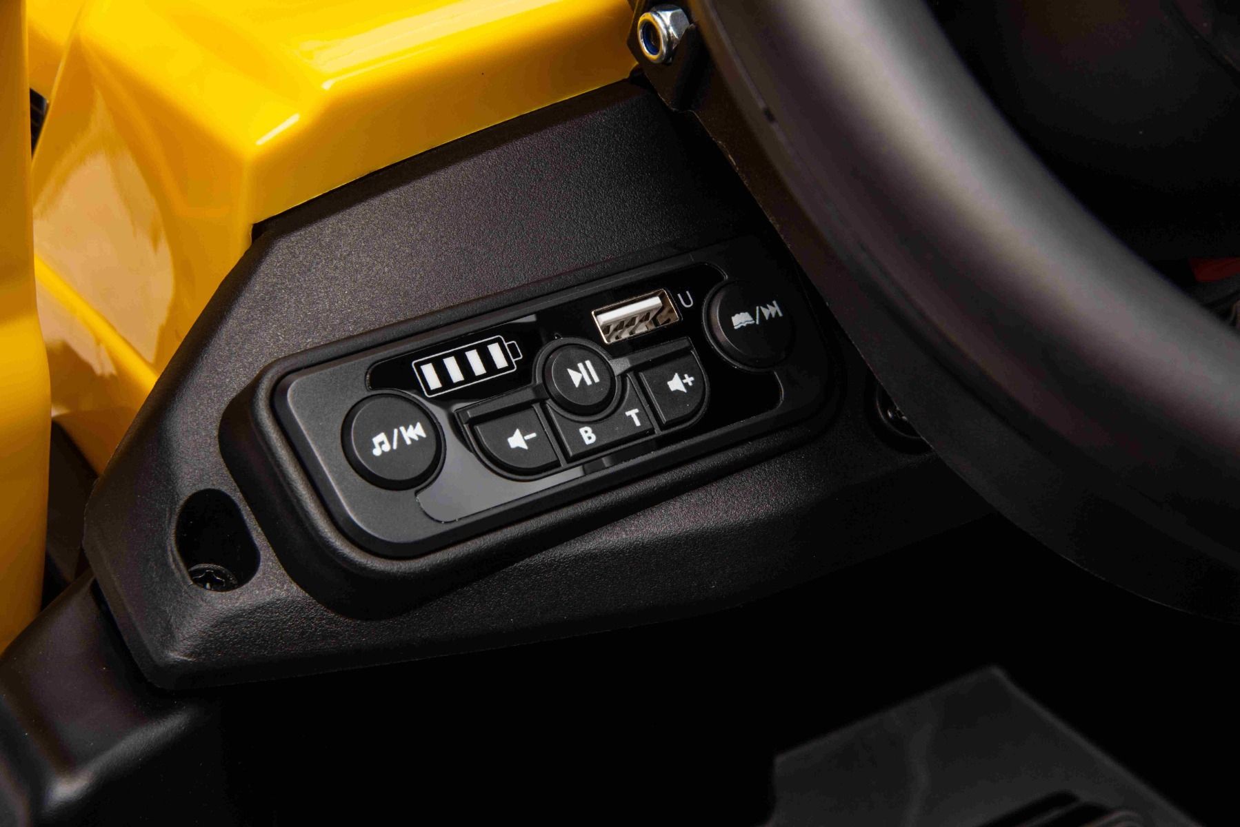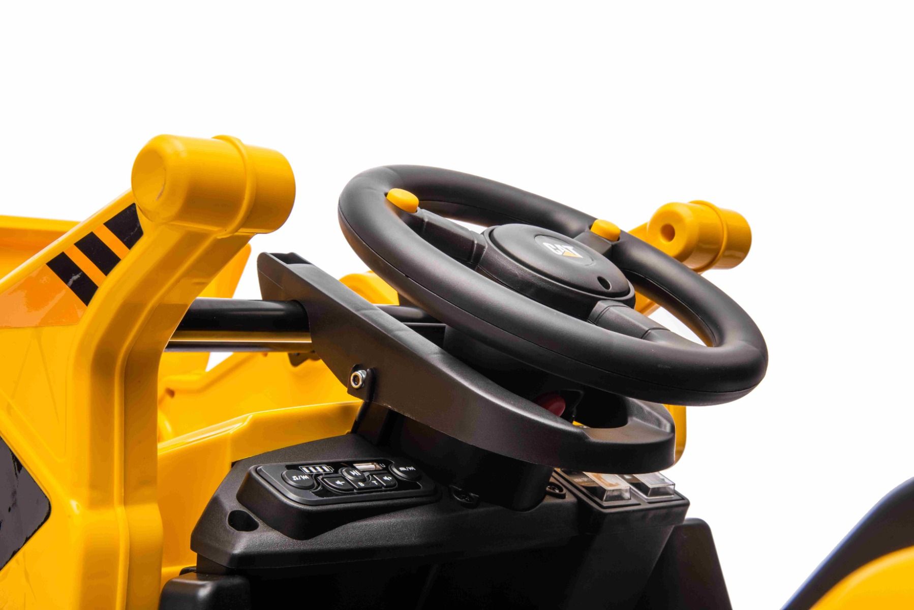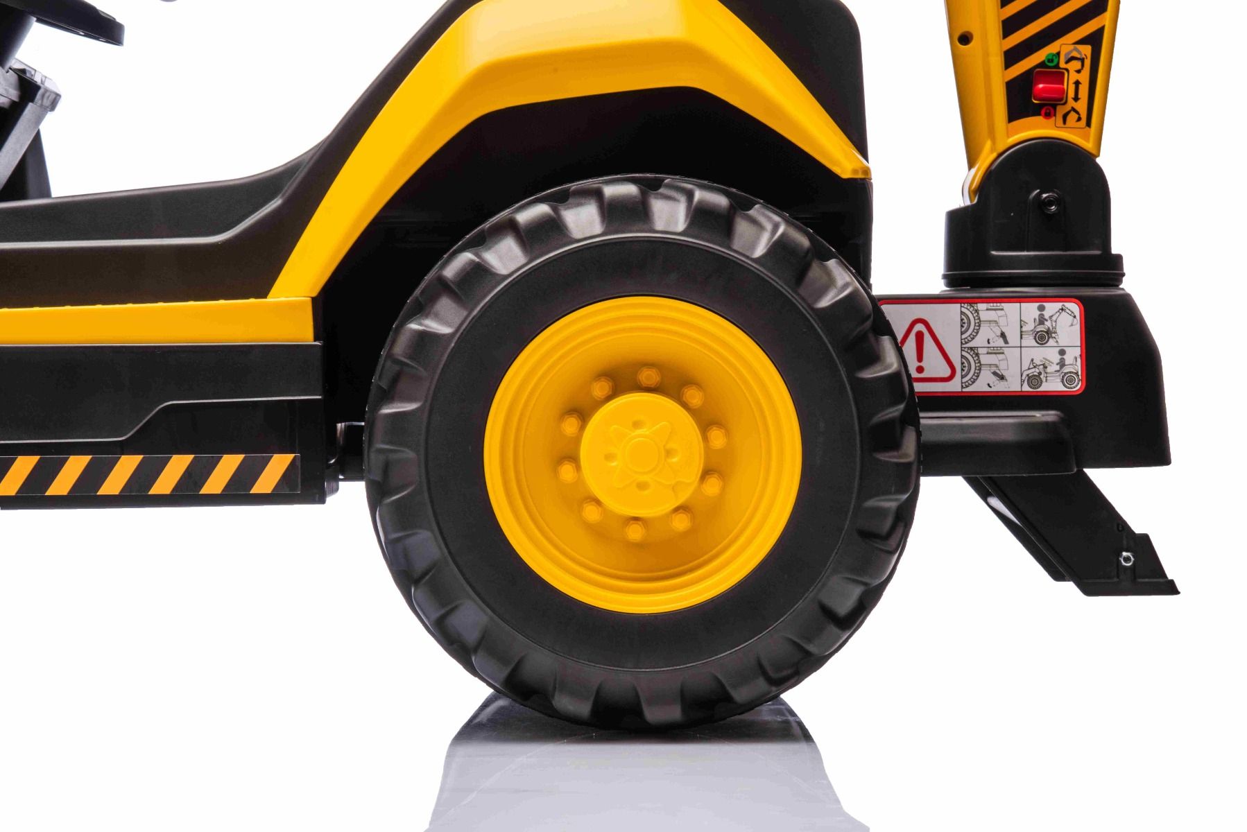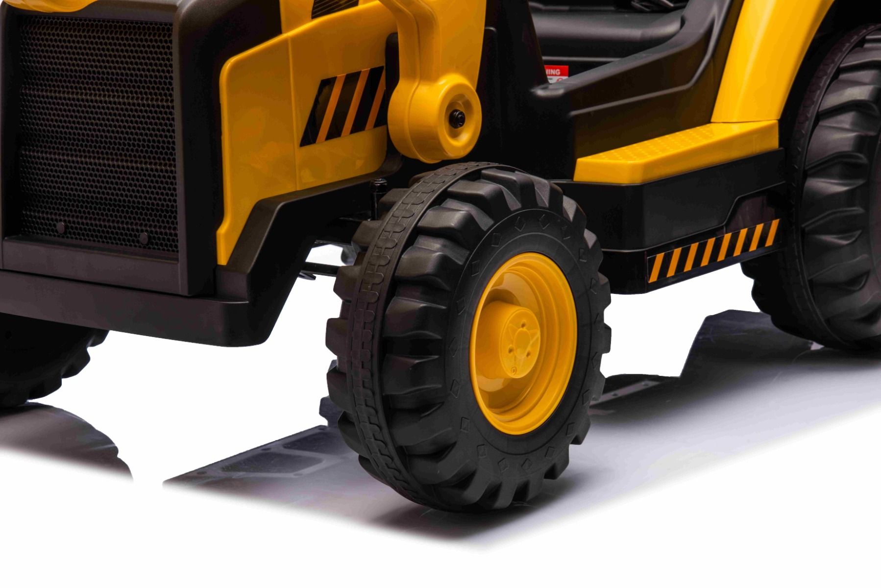 Pogon na zadnja kolesa zagotavljata dva 30W motorja na zadnjih kolesih, zaradi česar je bager primeren tudi za lahke terenske vožnje. Priložen je tudi MP3 predvajalnik z USB vhodom in stikalom za hitrost.