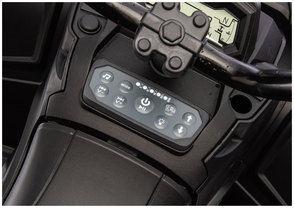 Štirikolesnik ima 3 hitrosti, udoben sedež iz eko usnja, mehka EVA kolesa, LED luči ter Bluetooth, FM radio in MP3 predvajalnik za še več zabave med vožnjo. Starši lahko vozilo nadzorujejo tudi z daljinskim upravljalnikom 2,4 GHz, ki vključuje varnostni gumb za takojšnjo zaustavitev.