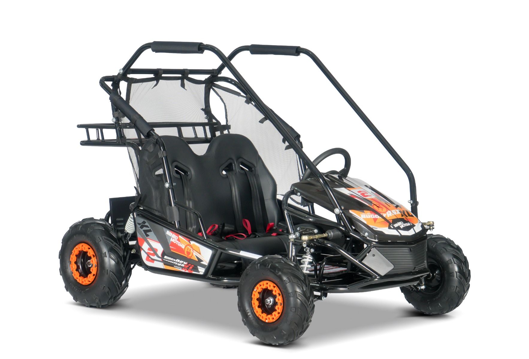 Buggy RSX XL Electric predstavlja novo dobo v otroških terenskih vozilih. Z zmogljivim brezkrtačnim motorjem in robustno dvosedežno konstrukcijo je ta model idealna izbira za starejše otroke in mlajše, ki iščejo tiho in okolju prijazno, a izjemno zmogljivo vožnjo. Zahvaljujoč odsotnosti emisij, samodejnemu pogonu in vrhunskemu vzmetenju model XL z lahkoto obvladuje zahteven teren, hkrati pa ohranja maksimalno varnost in stabilnost.