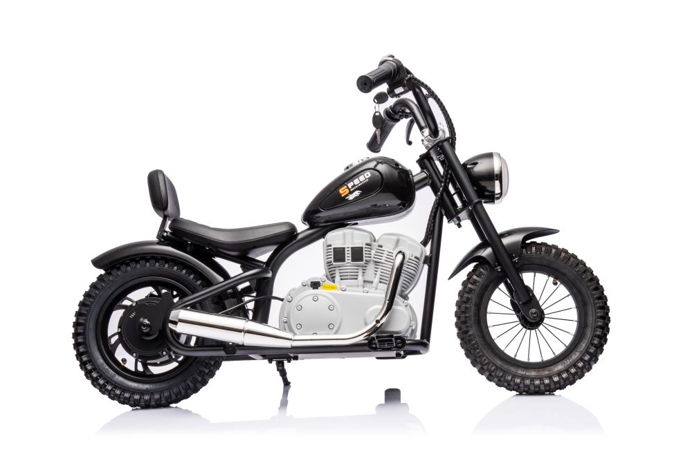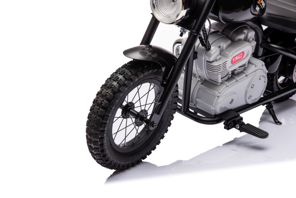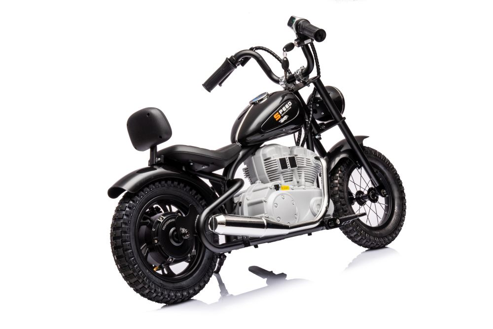 Motor na akumulator 36V A9902 – črn je zabavno in vznemirljivo otroško vozilo, ki ga poganja akumulatorski motor. Opremljen je z zmogljivo 36V baterijo in 350W Brushless motorjem, kar omogoča doseganje hitrosti do 25 km/h. Zasnovan je za varno in zabavno vožnjo otrok po dvoriščih in parkih. Motor je lahek, enostaven za uporabo in izdelan iz kakovostnih materialov, kar zagotavlja trajnost in dolgo življenjsko dobo. Sedež je udoben in varno nastavljen, medtem ko ročaji omogočajo enostavno upravljanje. Ponaša se tudi z učinkovitimi zavorami, ki omogočajo varno zaustavitev, ter dodatki, kot so zvonček in luči, za še večjo uporabnost in zabavo.