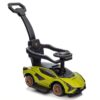 Otroški poganjalec Lamborghini bo zagotovo navdušil tako otroke kot njihove starše. Kakovostno izdelan, iz lahke in trpežne plastike ter s številnimi funkcijami ki omogočajo da bo poganjalec rasel z otrokom. Visoko naslonjalo zagotavlja otroku udoben in varen položaj med vožnjo, naslon za noge pa otrokom omogoča počitek za utrujene noge med sprehodom s starši, volan pa bo poskrbel za veliko zabave med vožnjo. Dolg in močan ročaj bo staršem nudil udobno in lahkotno vožnjo svojega otroka.