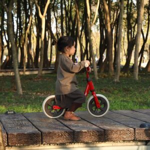 – Nizka zasnova z oporami za noge: Otroci lahko zlahka položijo noge na nizka naslonjala, kar jim omogoča boljšo stabilnost in nadzor nad kolesom za ravnotežje.