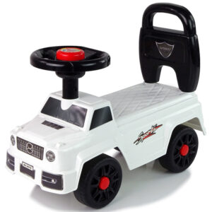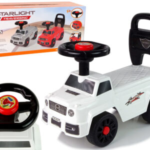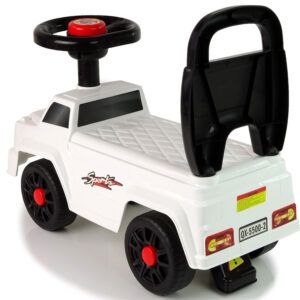 Otroško mini vozilo je bilo zasnovano s pozornostjo do najmanjše podrobnosti. Nalepke v obliki žarometov in rešetk dajejo vtis realističnega avtomobila. Izdelan je iz lahke plastične strukture, ki je zelo trpežna in trdna. Poganjalec lahko vaš malček pelje na sprehod. Na sredini volana je piščalka, ki vas bo obvestila, da je mali voznik na cesti. Na zadnjem delu avtomobila je opora, ki preprečuje nagibanje celotnega avtomobila nazaj. Naslonjalo preprečuje, da bi se otrok nagnil nazaj, zaradi česar bo lahko ostal stabilen na vozičku.